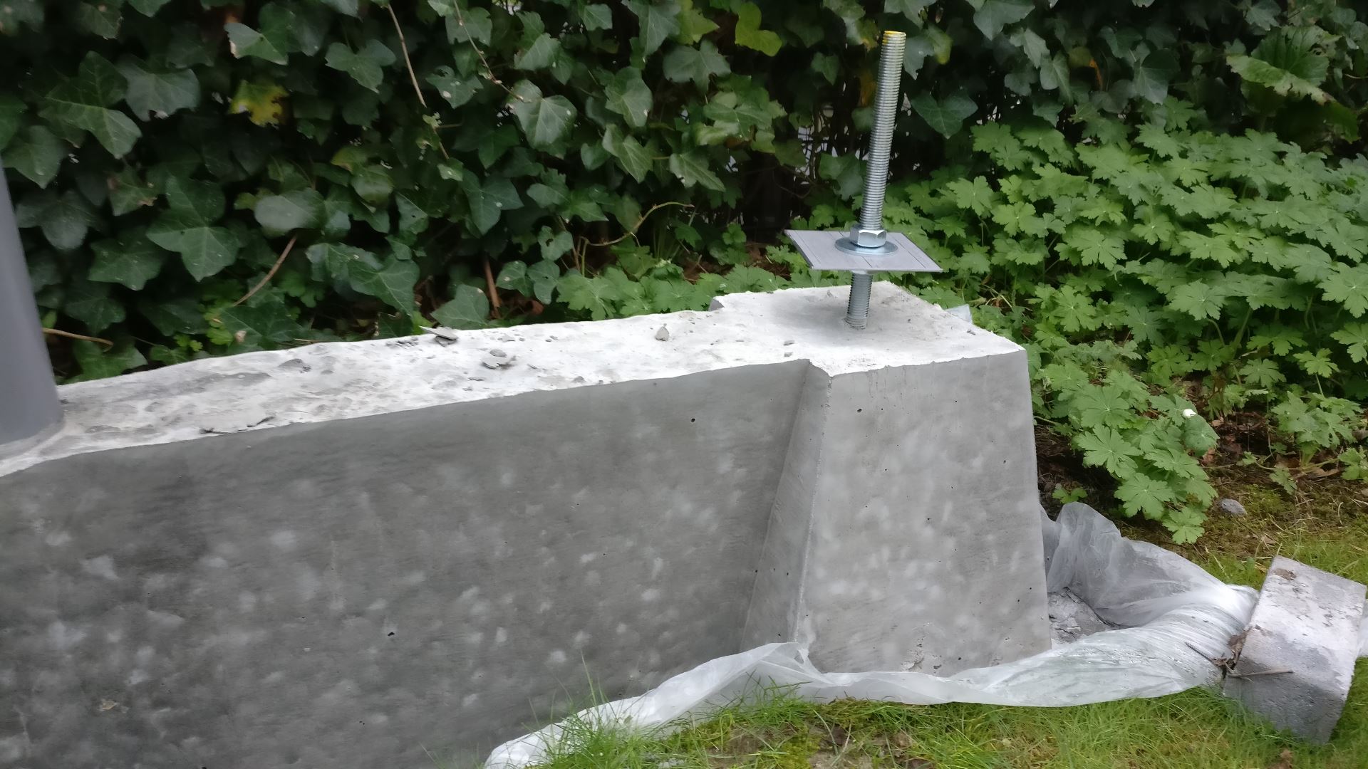 te lijnen. Daarnaast wilde ik ook dat de paal niet eenvoudigweg bovenop de poer plaatsen omdat ik bij hele sterke wind wil voorkomen dat het geheel wordt opgetilt.
