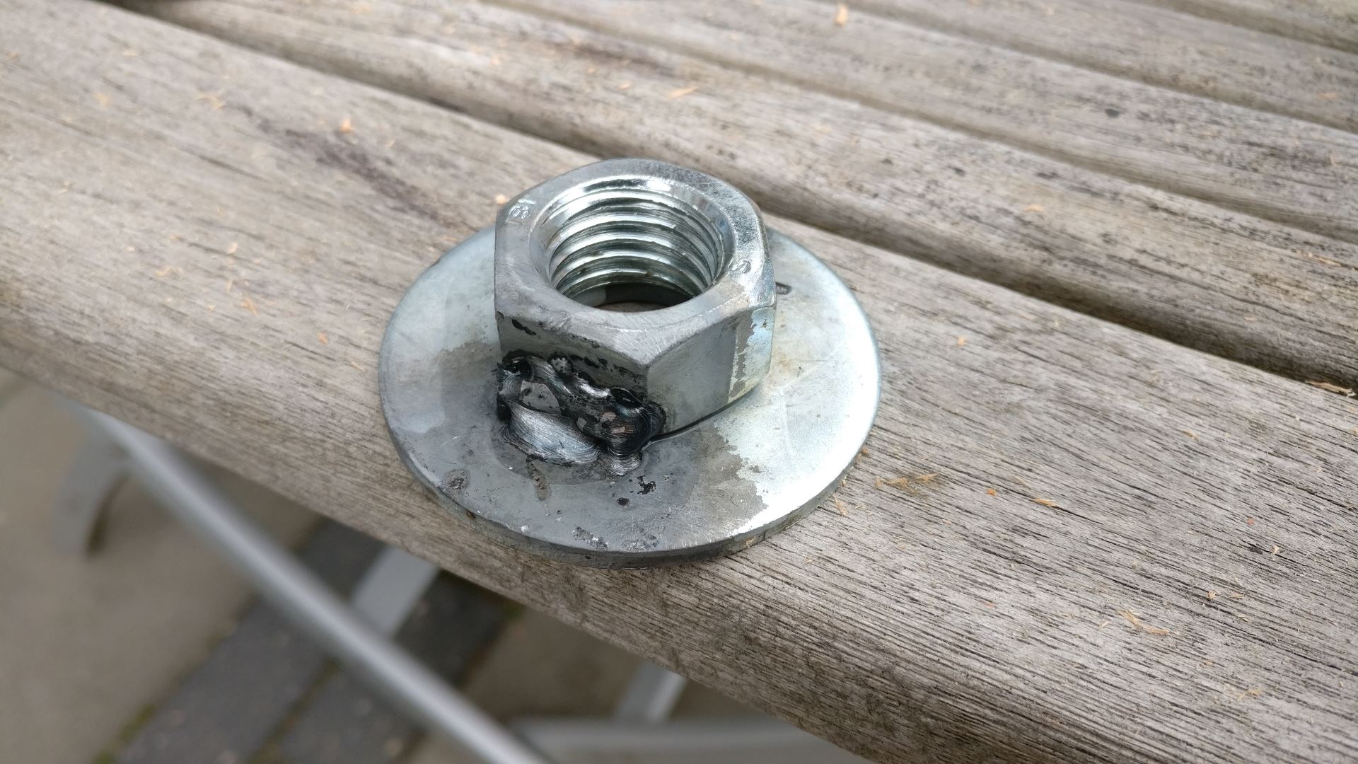 lijmtangen op hun plek voordat ik met wat flinke M10 bouten de boel vastmaak. Deze M10 bouten zijn eigenlijk ook stukken draadeind waar ik aan een kant een moer het vastgelast. Dit was niet alleen weer goedkoper, maar tevens leuker om