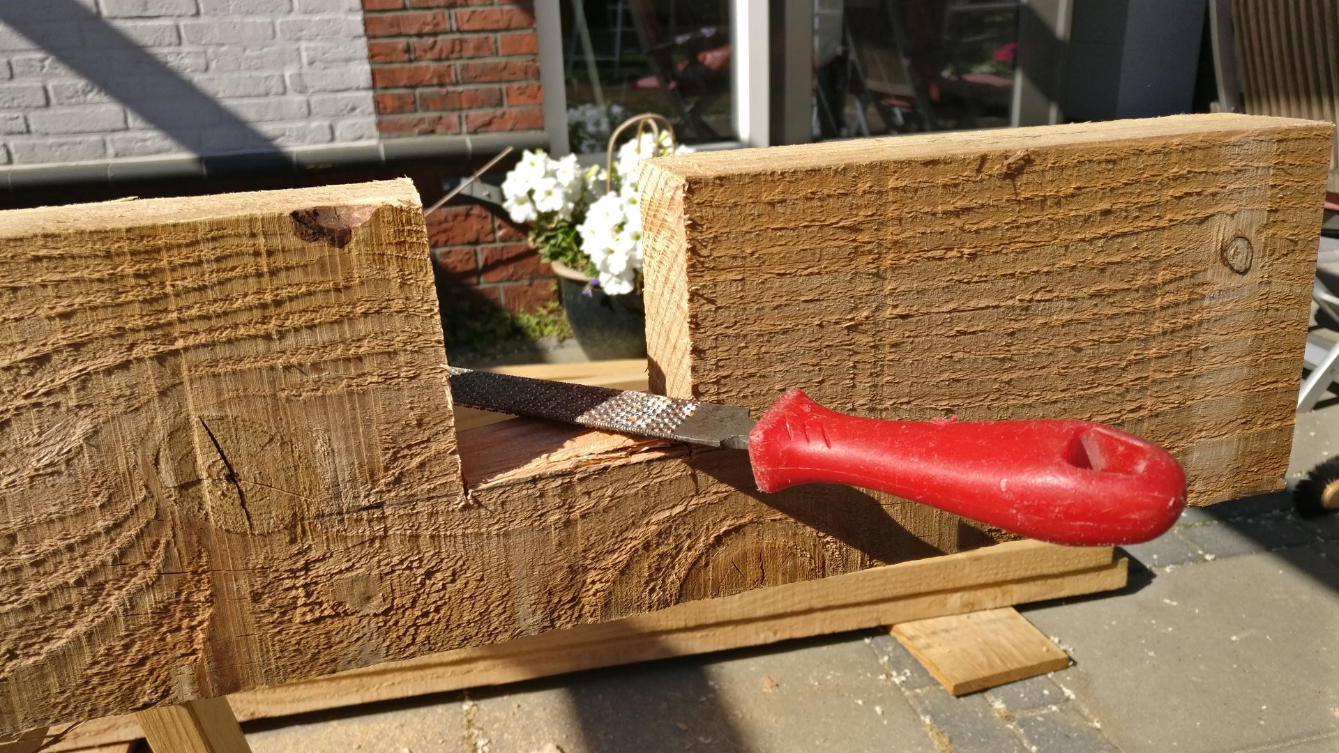 is dat ik de de liggers nog net met mijn cirkelzaag kan inzagen. Dit maakt het leven weer wat makkelijker.