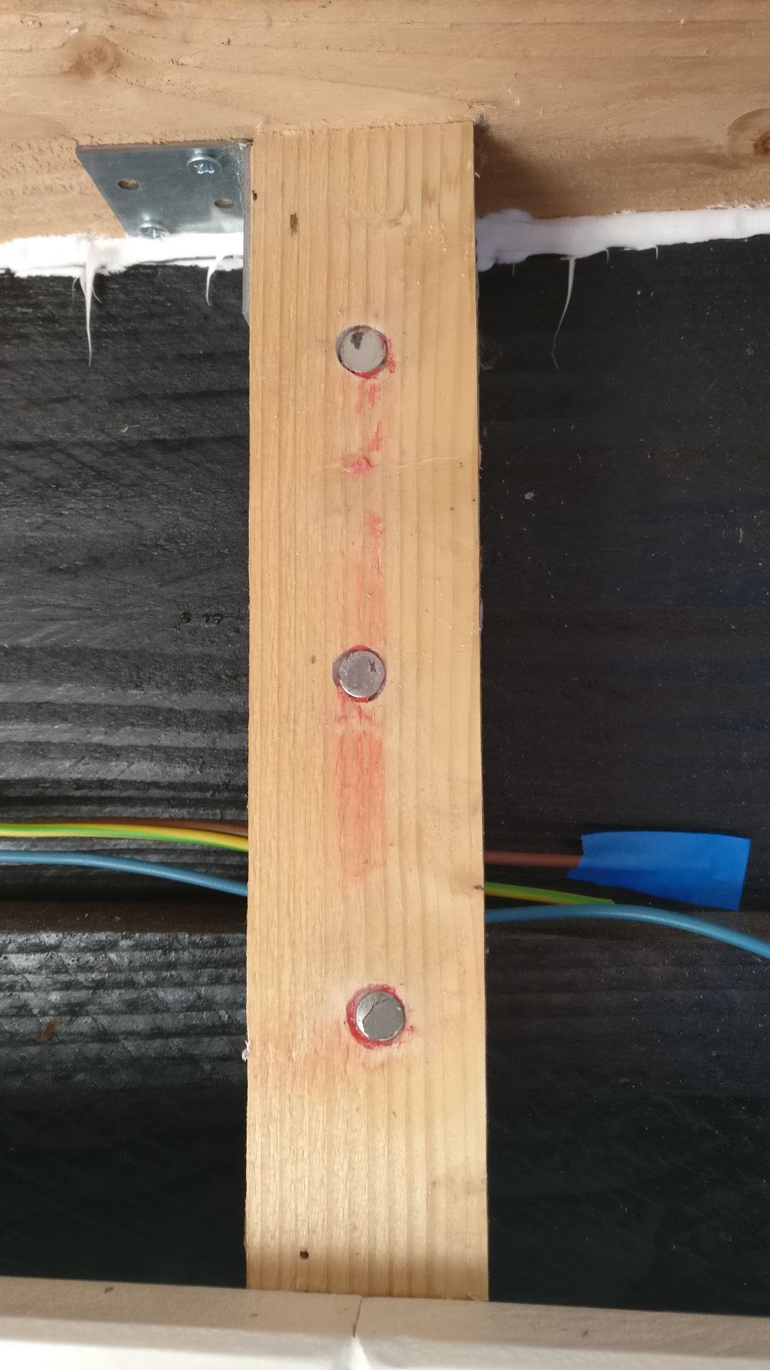 Ik gebruik hiervoor dunne neodynium magneten welke ik zowel in de achterliggende balken als in de panelen lijm. Eerst doe ik de balken.