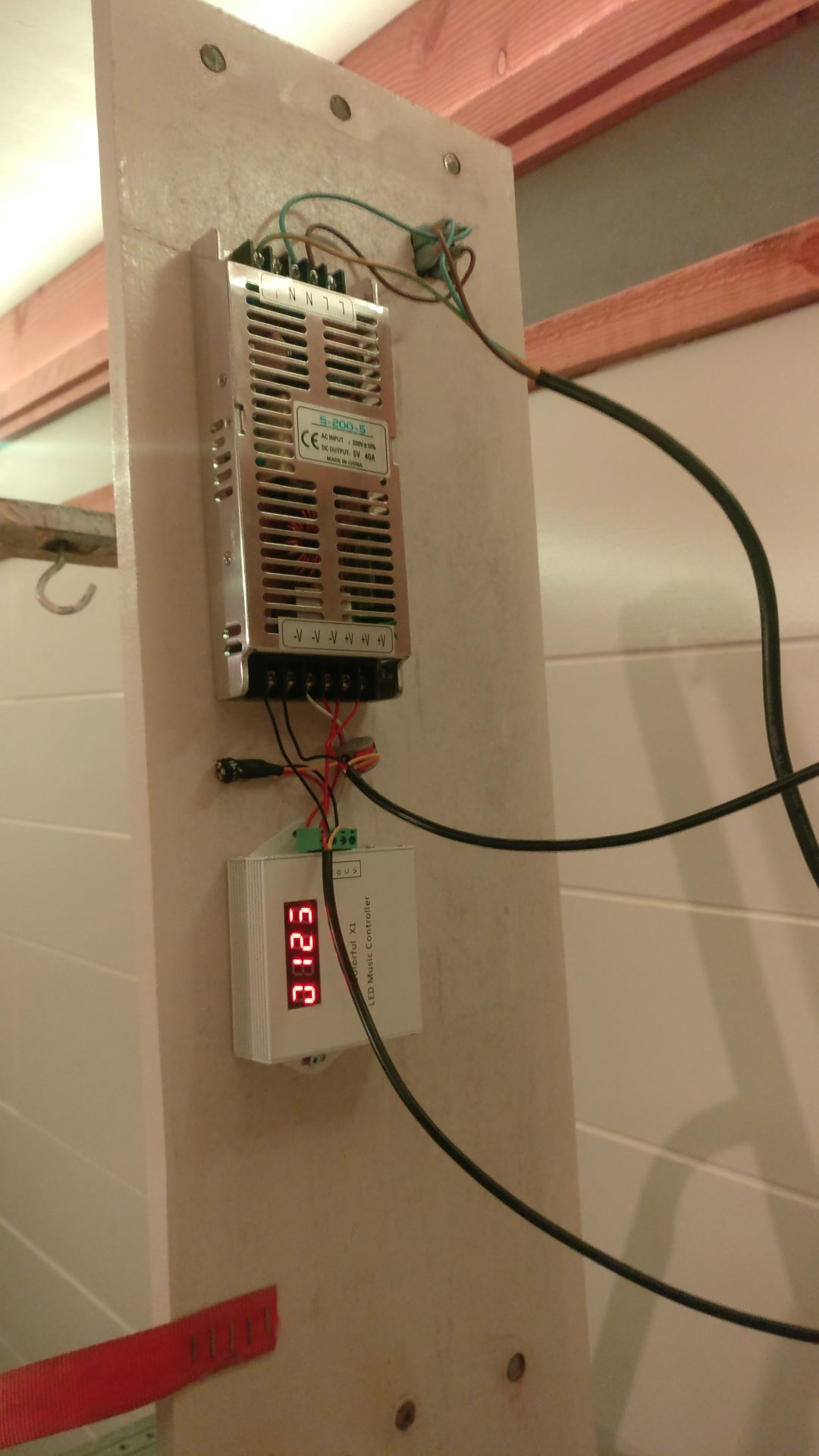 De LED verlichting te plaatsen. De LEDs zijn 4 strings van individueel aanstuurbare RGB LEDs. 400 in totaal. Deze LEDs worden aangestuurd met een kastje welke allerlei patronen en kleuren kan genereren. En dit alles voor een paar tientjes. Lang leve Ali-Express.